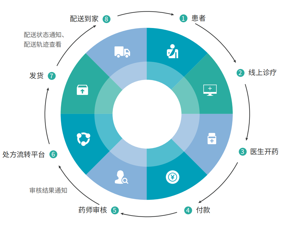 处方流转平台是联合医院、药品供应商、社会药店,实现医疗机构处方信息、医保结算信息和药品零售信息的互联互通、实时共享的信息化平台。平台以处方的审核与流转为核心,允许患者自主选择渠道取药,保障患者购药知情权和选择权;同时还能合理控制药品价格,降低患者购药整体开支;患者可到附近药店取药或药品配送到家,提升患者就医体验。